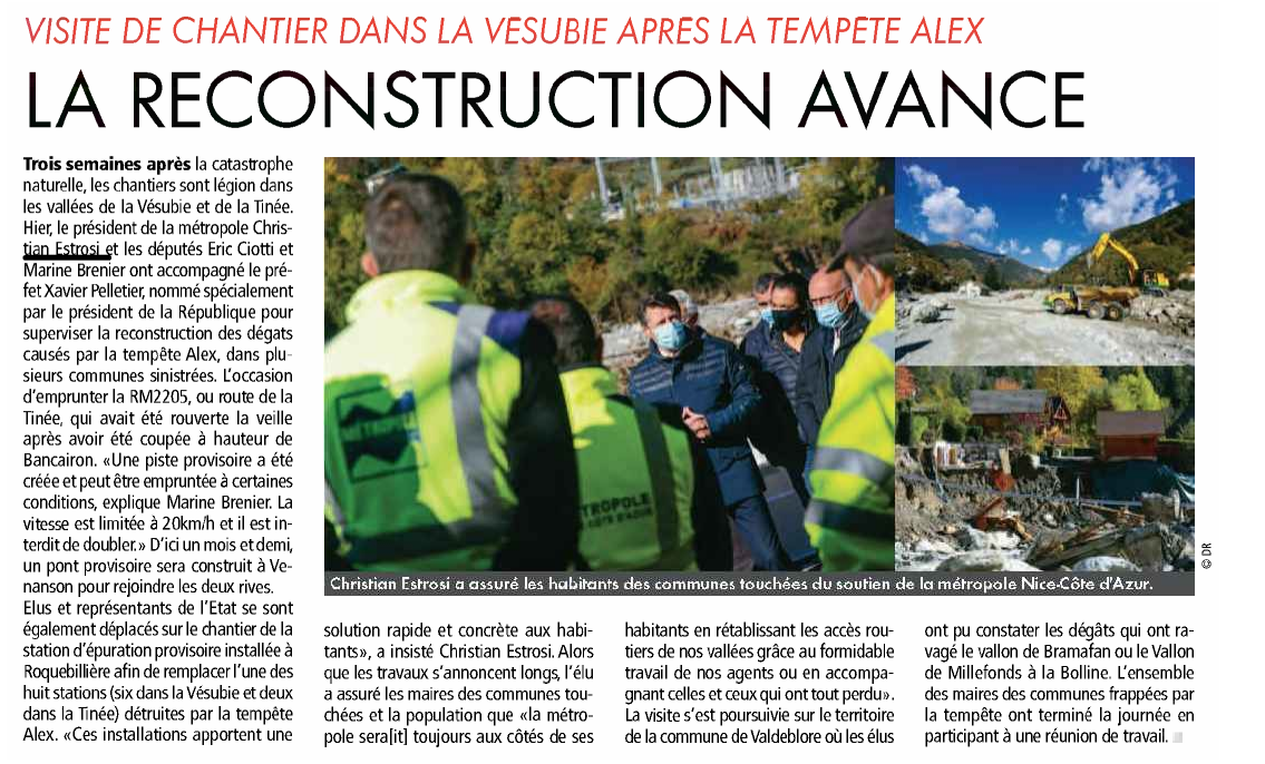 Visite de chantier dans la Vésubie après la tempête Alex : la reconstruction avance